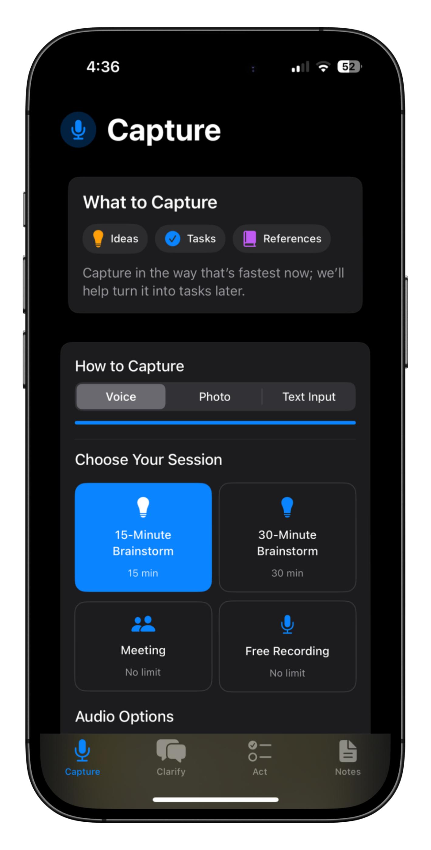 The moment you have an idea is rarely the moment you're sitting at a desk with perfect conditions. F0cusly captures however your brain works—walking, interrupted, half-awake, or in the middle of chaos—without making you format, organise, or "do it right.